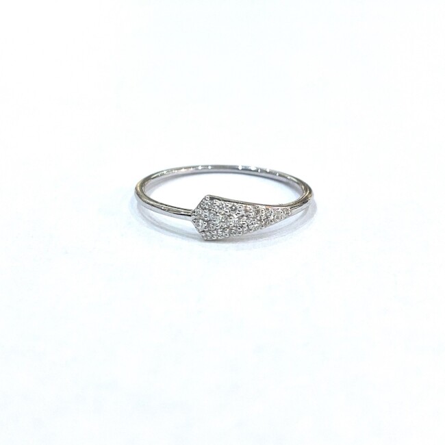 Bague or blanc, barrette verticale sertie de 2 baguettes diamants et brillants