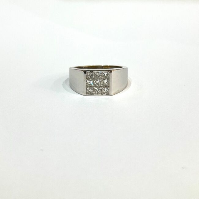 Bague or blanc "tambourin" ruban zig zag et diamants