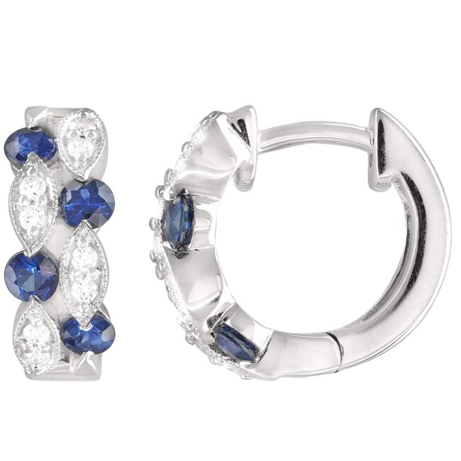 Créoles diamants et saphirs diamètre 10 mm, Or gris 18k