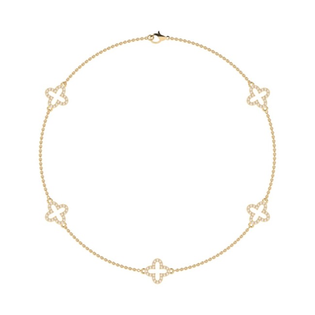 Collier Sautoir 60 cm Trèfles en or jaune 18K pavé de diamants
