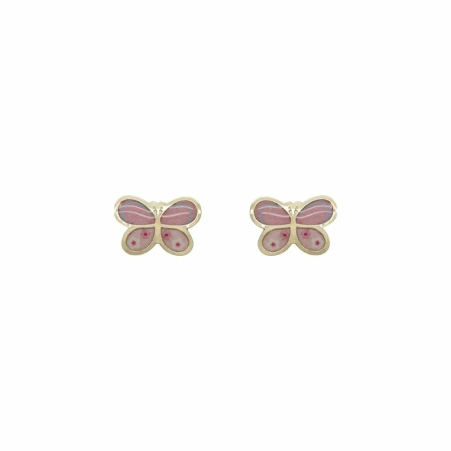 Boucles d'oreilles papillons en or jaune et émail