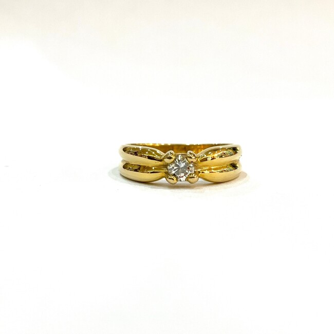 Bague or jaune type jonc, diamant princesse