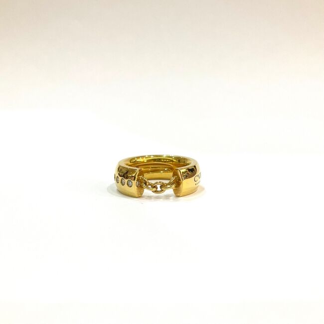 Bracelet Jonc ouvert contrarié, bords biseautés, diamants et or jaune 18k